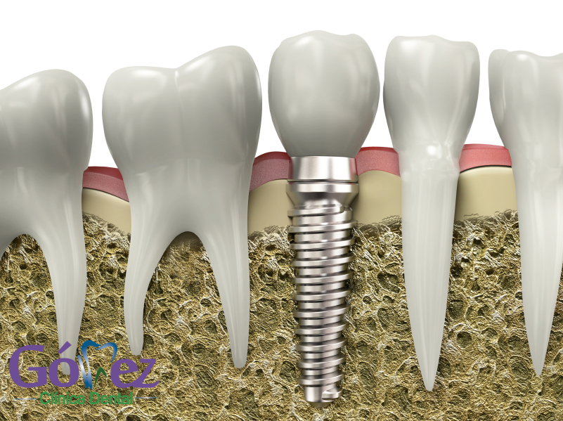 Un implante dental es un componente de titanio (reemplaza la raíz de un diente) que se ubica por medio de una cirugía en el maxilar debajo de la encía, el cual permite al dentista incrustar el diente de reemplazo o el puente en el área para reemplazar las piezas dentarias perdidas. Son beneficiosos para la salud bucal general pues no es necesario sujetarlos a otro diente, como los puentes